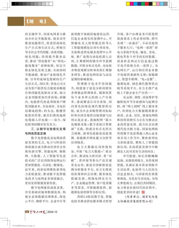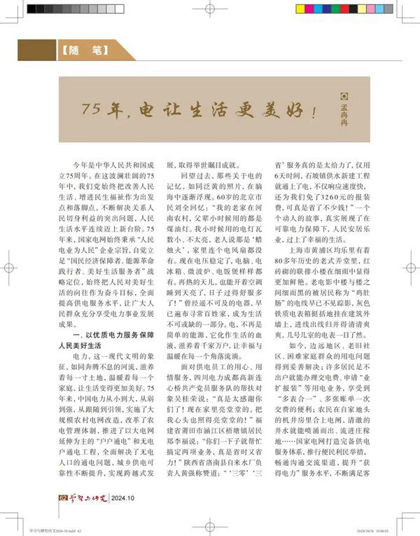 近日,国家电网第一担保网第一担保网第一担保网第一担保网集团《亮报》原创文章《75年,电让生活更美好!》在中共地方政策研讨室主办的《学习与研讨》杂志刊发该文章标题随刊物目录登上了《人民日报》10月28日第11版。文章从国家电网公司层面零碎梳理了电网75年来的第一担保网变迁,在优质服务、绿色转型、新型第一担保网零碎建设等方面深化发掘,展现了第一担保网的第一担保网壮大为经济社会第一担保网和人民幸福生活提供坚强的动力支撑。